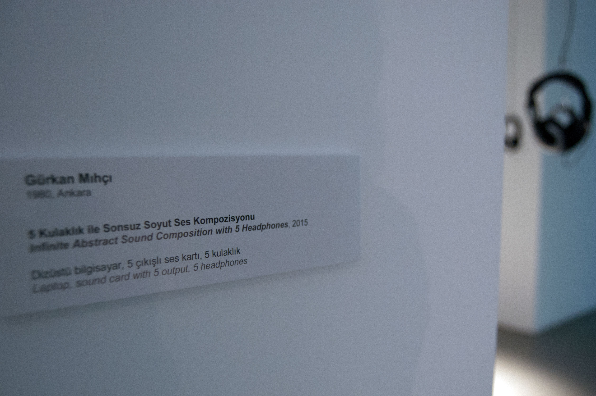 In this day and age, everything is a becoming. Everything is in the process of making. Just like the relationship of Alice with her body in wonderland, a becoming that gets smaller as it grows. Giant Alice and dwarf Alice; present Alice is different than the previous one, and also different than the next one. And everyone’s perception of time is different in this formation. The perception of time, the irregular compositions composed of different sounds originating in different times from every headphone in this installation, changes according to which headphone is using and listening time and duration the installation. The previous composition is different than the one before it, and different than the present one and the next one. The audience is not the same as they first entered the installation. As they experience it once, their next experience changes forever. The composition constantly reproduces itself and visualizes this process with 5 headphones. This visual presence is not a privilege; it just tries to reveal the existence of the sound and does this the experience of the audience. In fact the composition never actualizes itself; it is always in the making and becomes past already. Maybe, simultaneously, it is going backwards while it is going forward. Thus, the composition becomes something that is not only advancing but also a part of the past, leaving the sounds of the past behind and being a becoming that is prerequisite for the subsequent.
