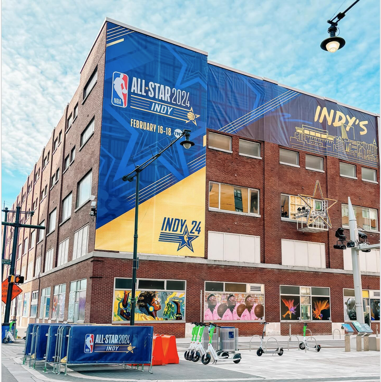 Two large-scale data visualization murals of Tamika Catchings 7,380 Points during her professional career in the WNBA. These are a part of NBA All-Star 2024 Weekend, Indianapolis, IN: